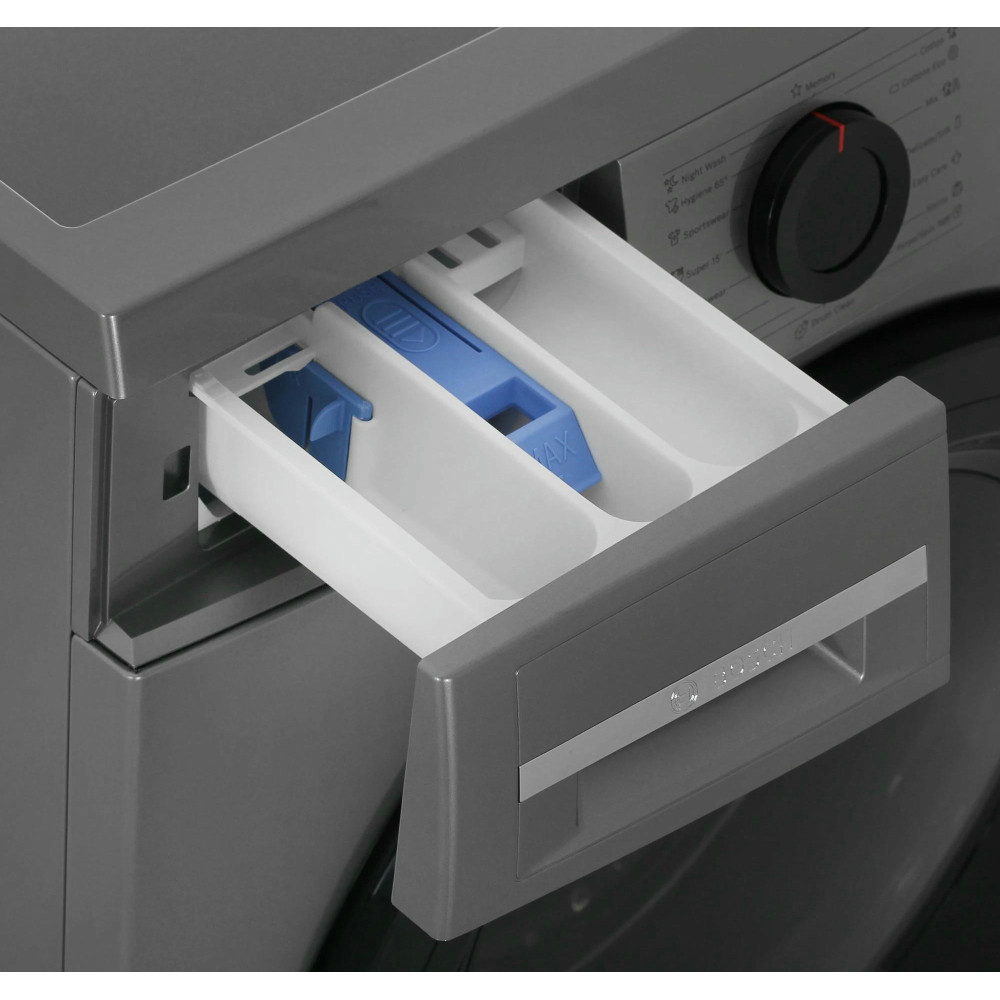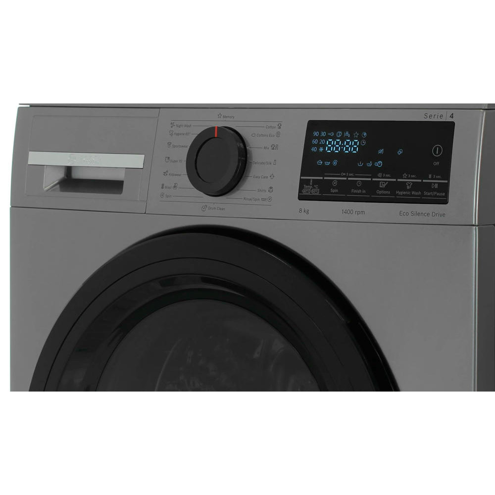 Стиральная машина Bosch WLS2846SME представляет собой современное решение для бытовых нужд. Это устройство, выполненное в элегантном сером цвете, имеет компактные размеры, что позволяет установить его даже в небольших помещениях. Она обладает фронтальной загрузкой и вместительным барабаном на 8 кг белья, что делает ее идеальной для семей с детьми или больших домохозяйств.