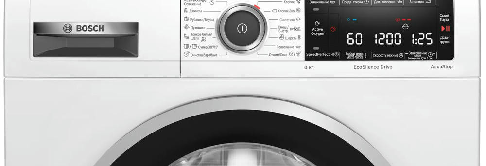 Устройство оснащено индикацией следующих видов: хода программы, времени до окончания стирки, режима энергоэффективности SmartEcoControl. Встроенная очистка барабана предусмотрена в функционале. За подавление дисбаланса при отжиме отвечает 3D-автоматика. Современная машина работает как единый слаженный механизм, включающий 13 автоматических программ в зависимости от типа ткани и степени загрязнения. Функция отложенного старта до 24 часов, позволяет получить чистое белье к определенному моменту времени. За безопасную эксплуатацию отвечает защита от протечек AquaStop, которая мгновенно прекратит подачу воды в бак при возникновении аварийной ситуации. Блокировка от детей не даст ребенку внести вои изменения в настройки системы.