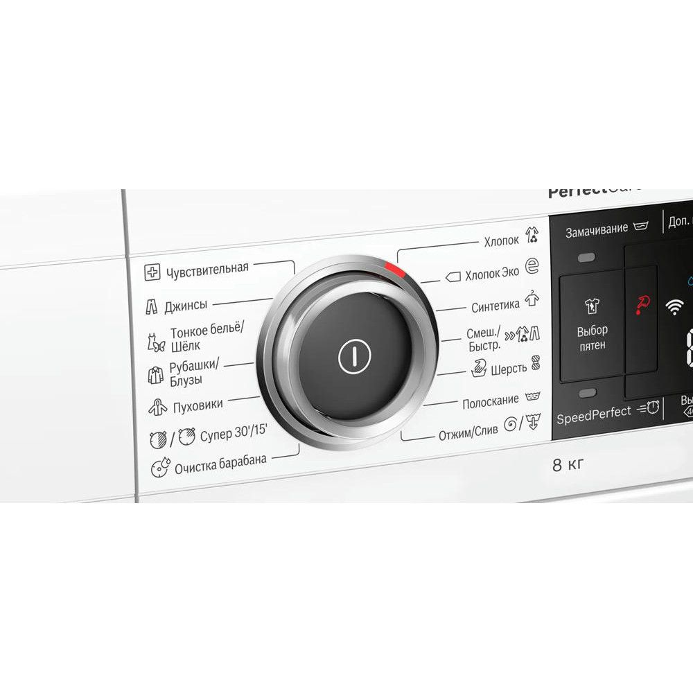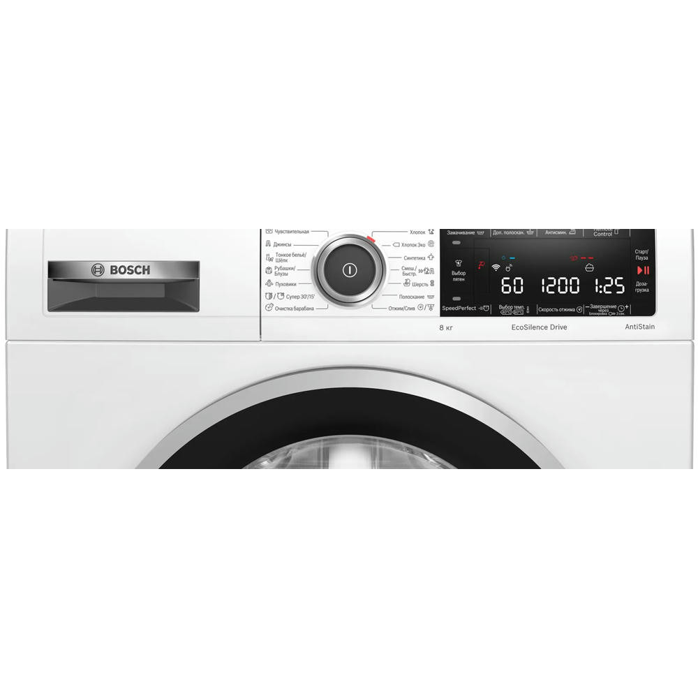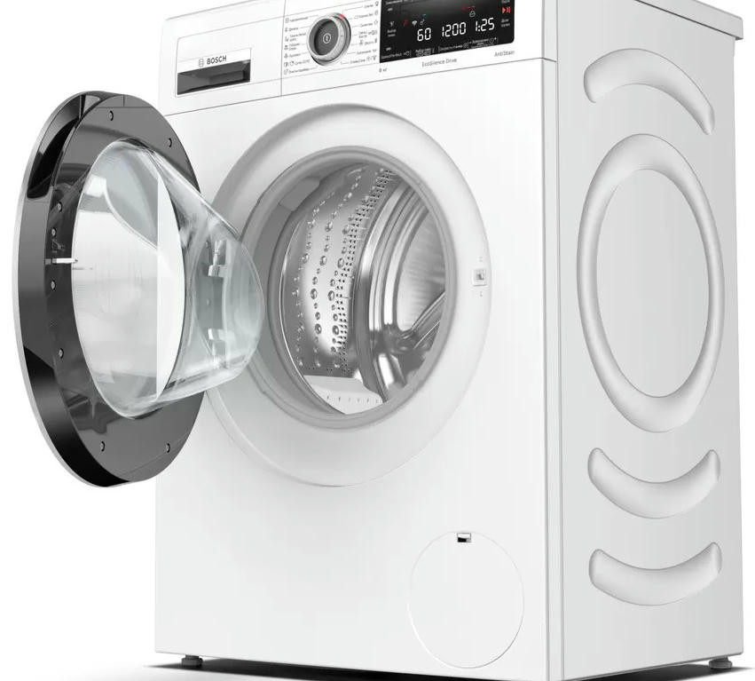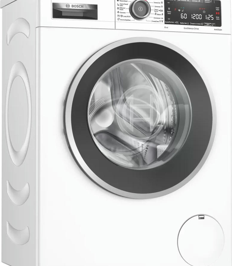 Стиральная машина BOSCH WLW24M4HOE выполнена в классическом белом цвете. Модель из Serie 8 относится к отдельностоящему типу с фронтальной загрузкой, максимальный объем которой составляет 8 кг. Благодаря функции Home Connect вы можете управлять устройством удаленно по Wi-Fi. Класс энергопотребления A является стандартным для данной единицы бытовой техники. Встроенная очистка барабана облегчает уход за ним. Инверторный двигатель EcoSilenceDrive является тихим и экономичным. Уровень шума в 60 дБ не доставит акустического дискомфорта обладателю. Максимальная скорость отжима равна 1200 об/мин. Материал барабана SoftCare Drum нержавеющая сталь, устойчивая к внешним воздействиям и длительному влиянию влаги и моющих средств. Электронное управление, простое и понятное, осуществляется по средствам сенсорных клавиш и поворотного переключателя. Многофункциональный LED-дисплей отображает всю необходимую информацию о работе. По окончании цикла вы услышите звуковой сигнал. Петли дверцы люка расположены слева. А благодаря особому дизайну возможна установка машины вплотную к стене или мебели, что позволит рационально использовать пространство в квартире. Гарантия от производителя составляет 12 месяцев с даты приобретения.