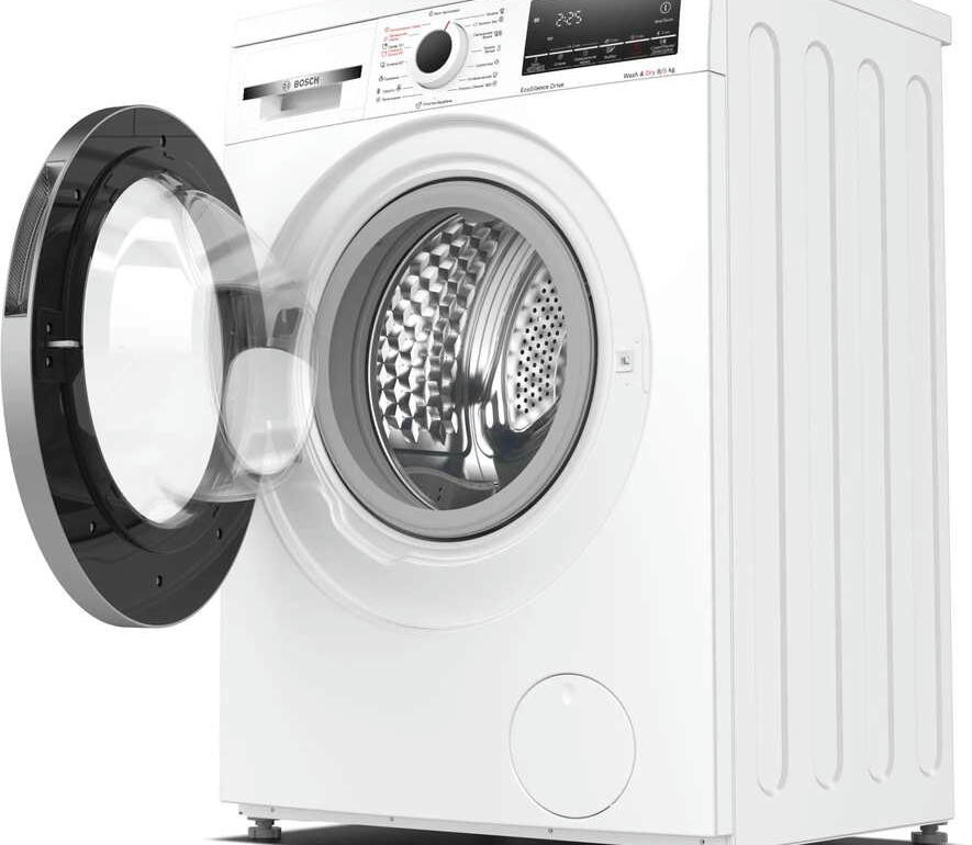 Модель имеет фронтальный тип загрузки и способна вместить до 8 кг белья для стирки и до 5 кг для сушки. Максимальная скорость отжима составляет 1400 об./мин. Это позволяет эффективно извлечь влагу из белья и сократить время сушки. Стиральная машина отличается компактными размерами (85x59.5x55 см), что позволяет установить ее даже в небольшой ванной комнате или кухне.
