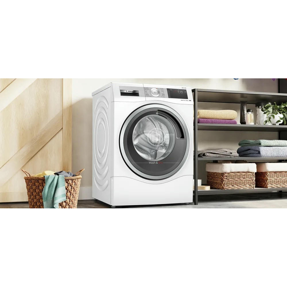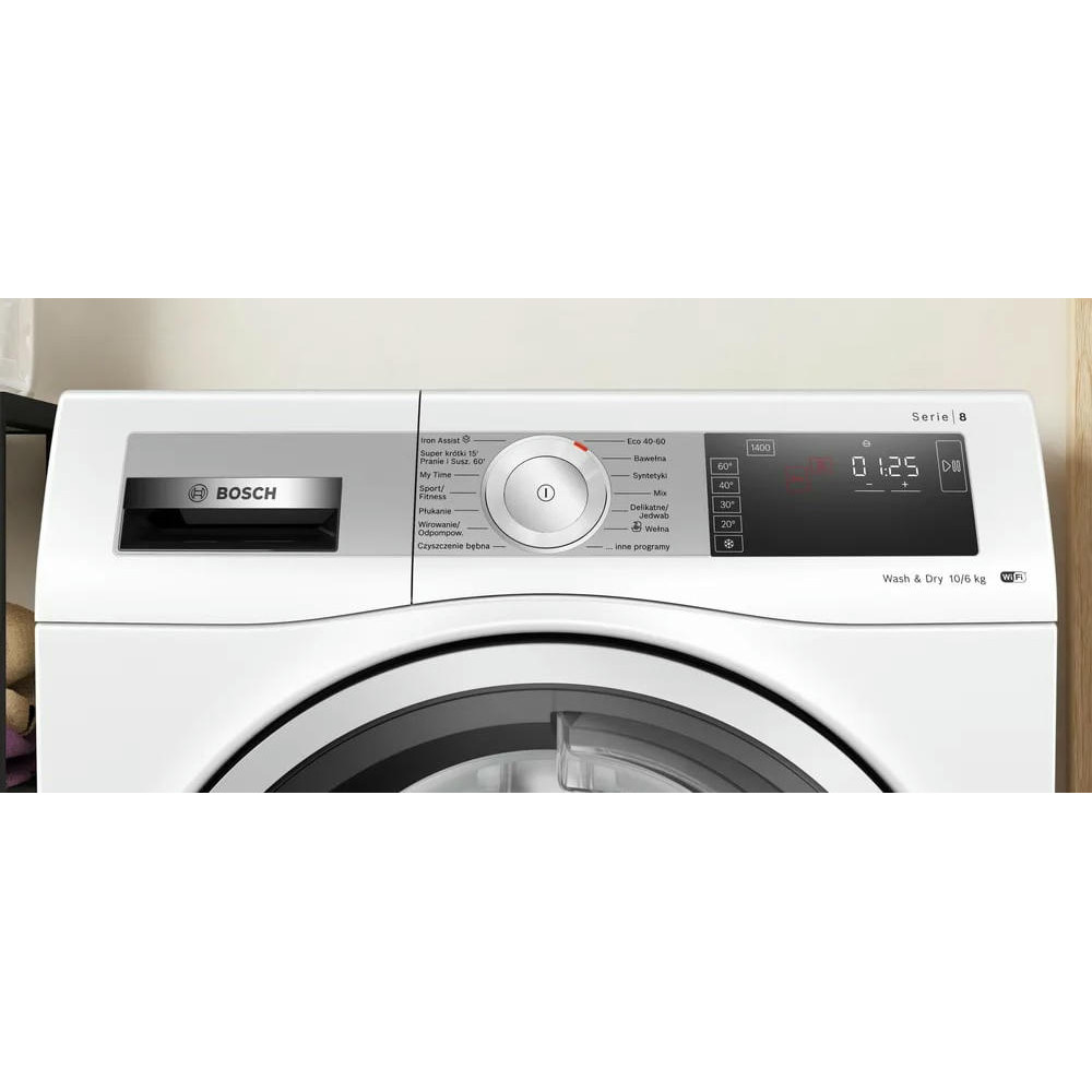 Стирально-сушильная машина Bosch WDU8H540PL предлагает 14 различных программ стирки, включая предварительную стирку, стирку хлопка, синтетики, смешанного и деликатного белья, а также специальные программы для шерсти и спортивной одежды. Функция Home Connect позволяет управлять машиной дистанционно с помощью смартфона или планшета. Модель оснащена системой сушки типа конденсационной, которая обеспечивает бережную сушку белья. Максимальная загрузка при стирке составляет 10 кг, а при сушке - 6 кг. Барабан из нержавеющей стали VarioDrum обеспечивает эффективное и бережное к белью вращение. Внутренняя подсветка барабана облегчает загрузку и выгрузку белья. Машина обладает функцией отложенного старта до 24 часов, что позволяет настроить время начала стирки в соответствии с вашим расписанием. Сигнал окончания программы информирует вас, когда стирка или сушка завершена. Машина также оснащена блокировкой от детей и системой защиты от протечек воды AquaStop, что обеспечивает безопасность использования.