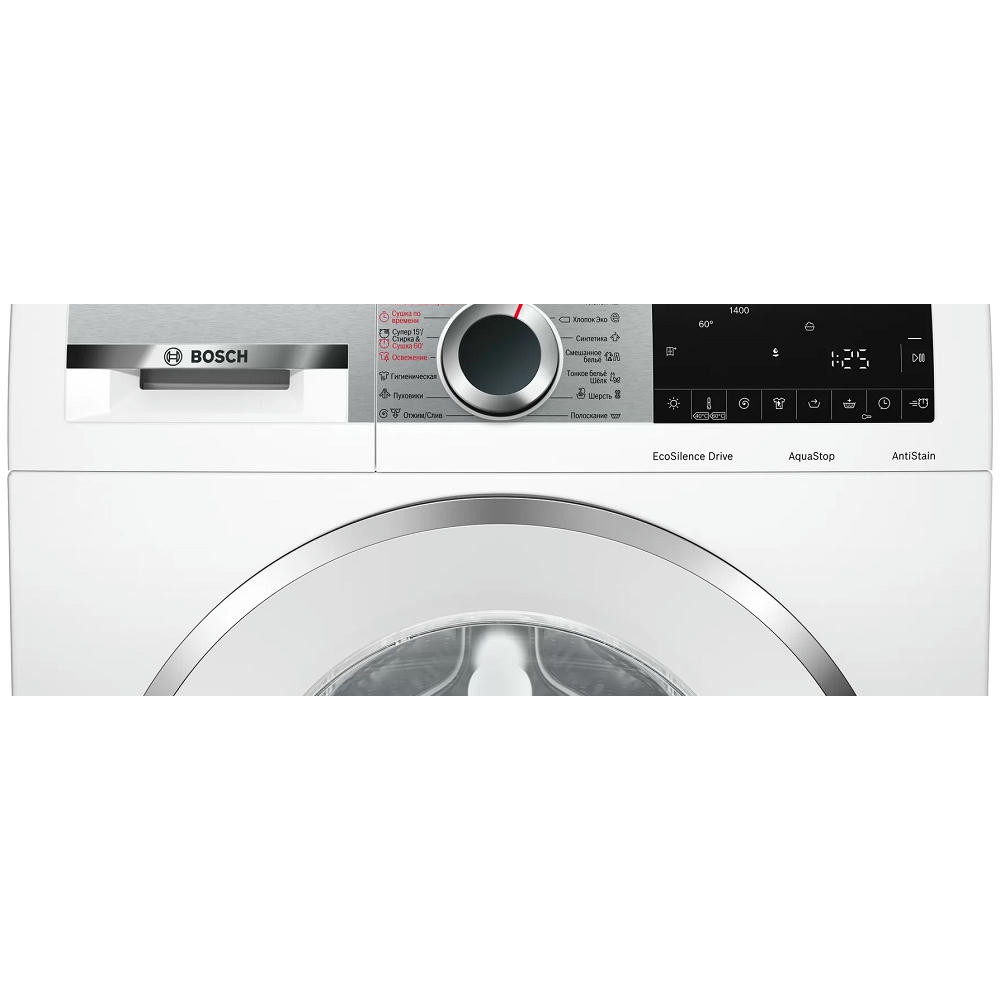Особенности этой модели включают технологии 3D AquaSpar и VarioPerfect, функцию «Вода +», контроль пенообразования и подавление дисбаланса при отжиме. Это обеспечивает бережную и эффективную стирку и сушку белья. Двигатель EcoSilenceDrive обеспечивает тихую и надежную работу. Внутренняя подсветка барабана упрощает загрузку и выгрузку белья.