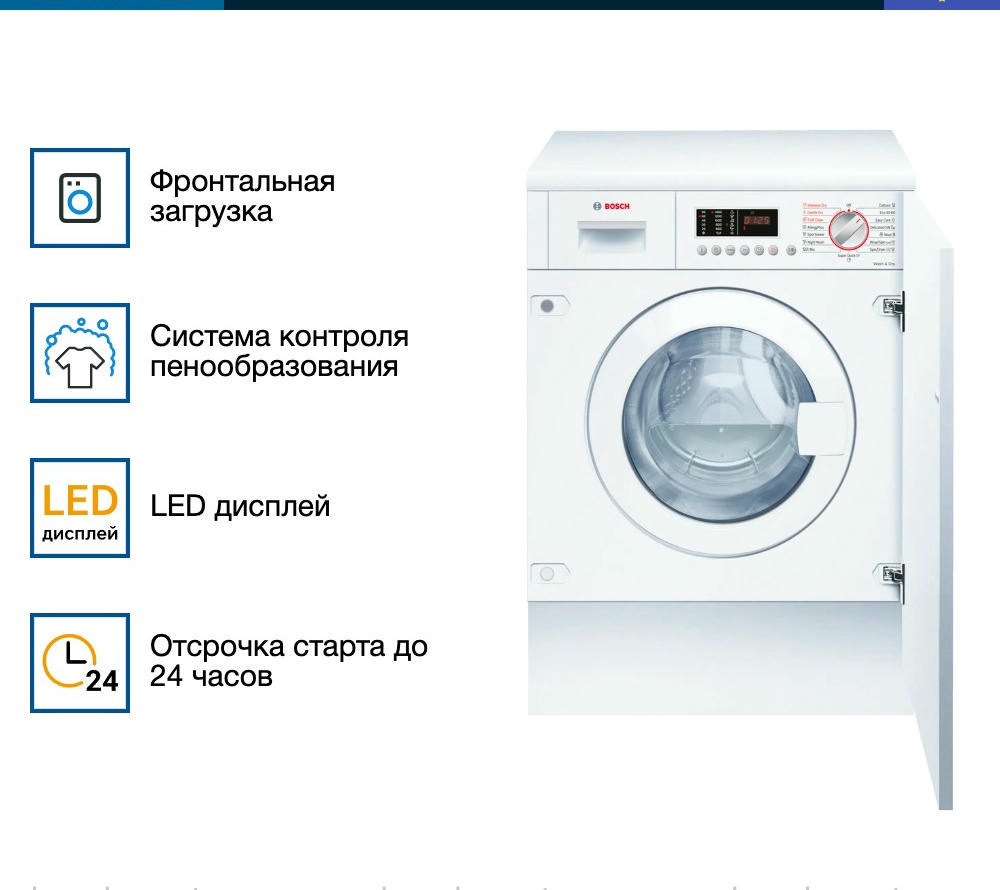Встраиваемая стирально-сушильная машина Bosch WKD28543EU — это современное решение для тех, кто ценит комфорт и качество. Она сочетает в себе надежность и функциональность, которые являются залогом долгого срока службы. Благодаря компактным размерам, она идеально вписывается в любой интерьер, сохраняя пространство и обеспечивая эстетический вид.