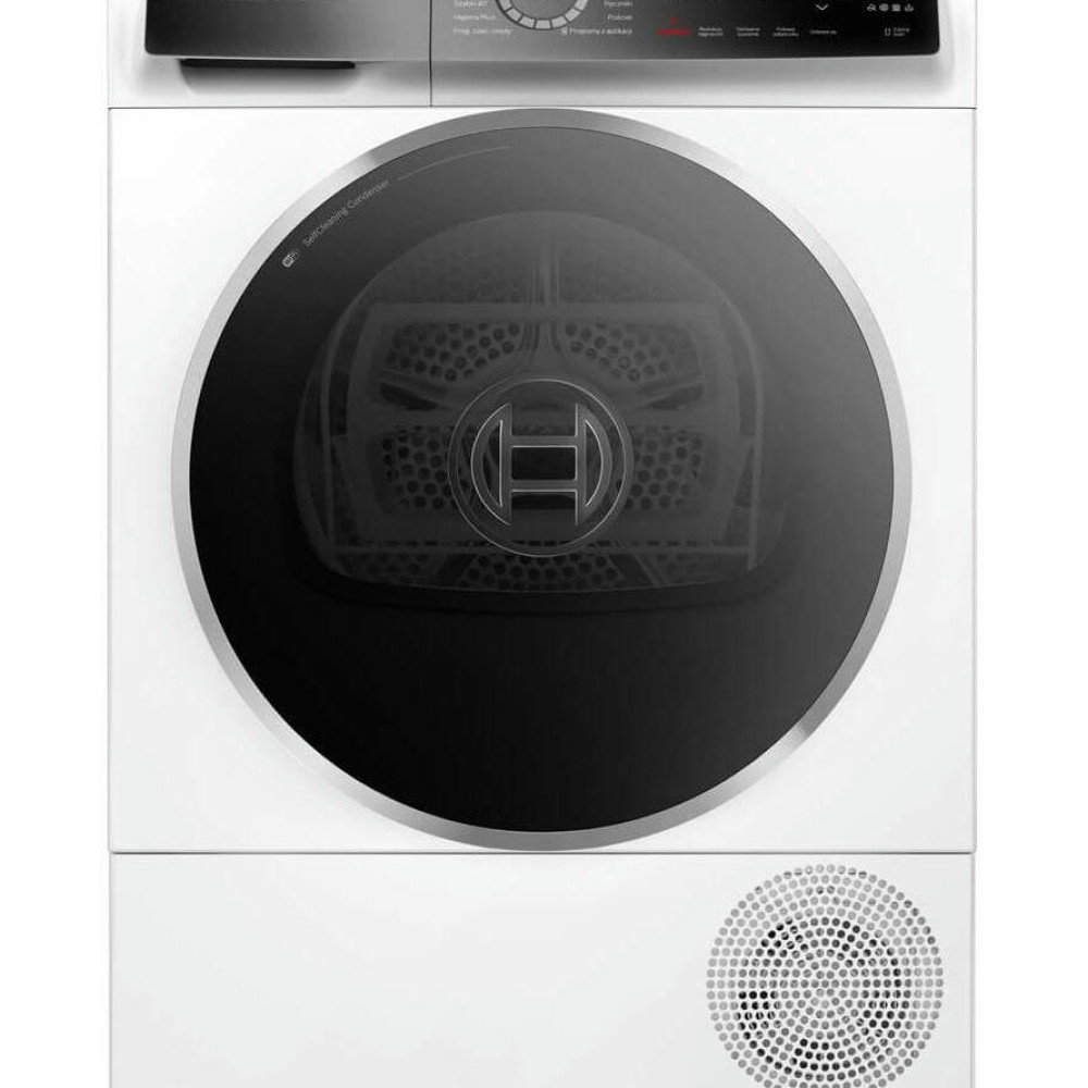 Модель оснащена корзиной для сушки, что позволяет бережно сушить деликатные вещи. Барабан изготовлен из нержавеющей стали, что обеспечивает его долговечность и надежность. Подсветка барабана упрощает загрузку и выгрузку белья. Двигатель с инверторным управлением обеспечивает тихую и эффективную работу машины. Машина имеет возможность отвода конденсата в канализацию и оснащена самоочищающимся конденсатором. Это обеспечивает более эффективную работу и продлевает срок службы устройства. Ворсовый фильтр помогает улучшить качество сушки и предотвратить засорение системы. Дверца машины перенавешиваемая и имеет навес справа, что облегчает ее использование. Модель оснащена защитой от детей, что делает ее безопасной для использования в семьях с маленькими детьми. Класс энергопотребления А+++ гарантирует экономичность использования машины.