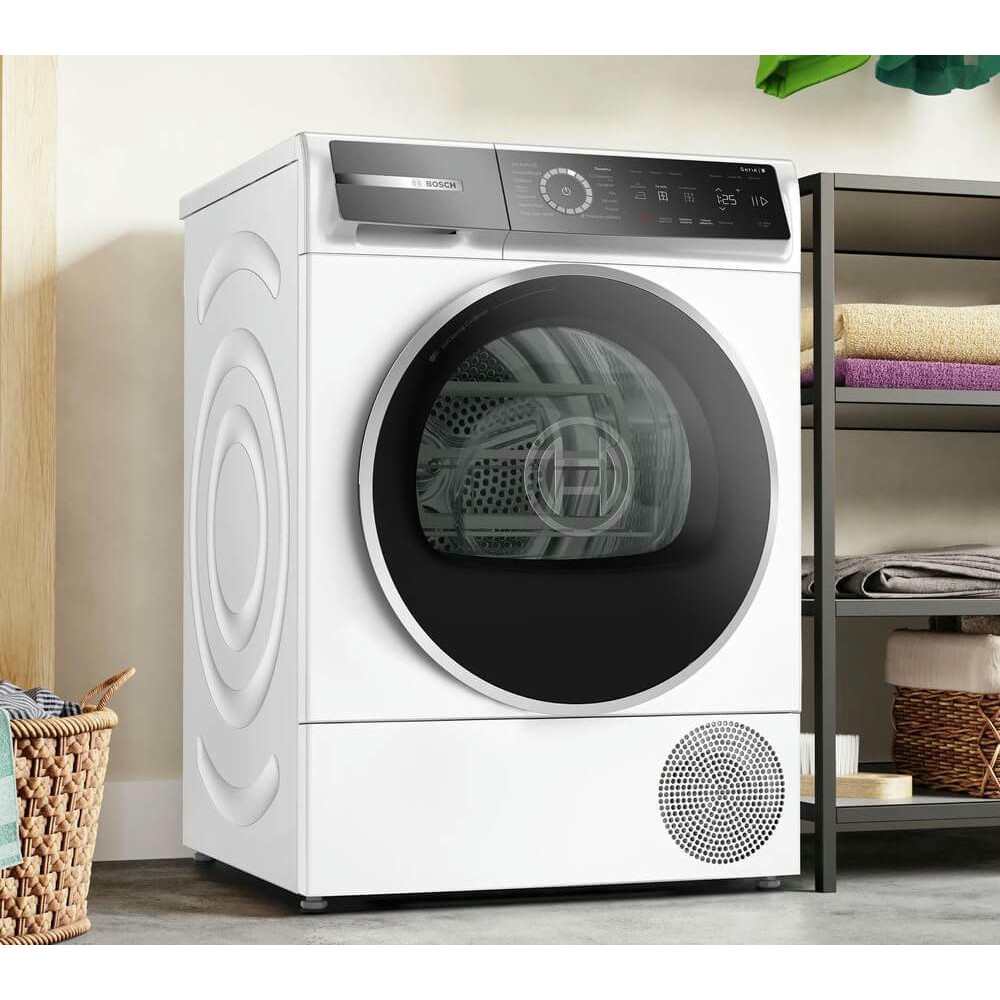 Сушильная машина Bosch WQB245AEPL – это высококачественная техника от известного производителя, представленная в белом цвете, которая станет незаменимым помощником в каждом доме. Модель относится к серии Serie | 6 и имеет 12 месяцев гарантии. Она отдельностоящая, что обеспечивает большую гибкость при выборе места установки. Машина оснащена конденсационным типом сушки, что позволяет бережно обращаться с вашим бельем и сохранять его первоначальный вид долгое время. Максимальная загрузка составляет 9 кг, что делает ее идеальным вариантом для больших семей. Управление машиной осуществляется с помощью сенсорных кнопок Touch control и электронного дисплея LED. Это обеспечивает простоту и удобство использования. Модель оснащена функцией отложенного старта, позволяющей задать время начала работы машины на период до 24 часов. Это очень удобно, если вы хотите, чтобы белье было готово к определенному времени. Машина имеет 14 программ сушки, включая сушку хлопка, синтетики, рубашек, смешанного белья, полотенец, шерсти и деликатного белья. Также есть специальные программы, такие как Allergy Plus/ Hygiene и Супербыстрая сушка за 40 минут. Благодаря функции Smart Dry машина автоматически выбирает наиболее подходящую программу сушки в зависимости от типа белья.