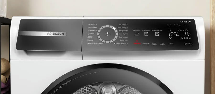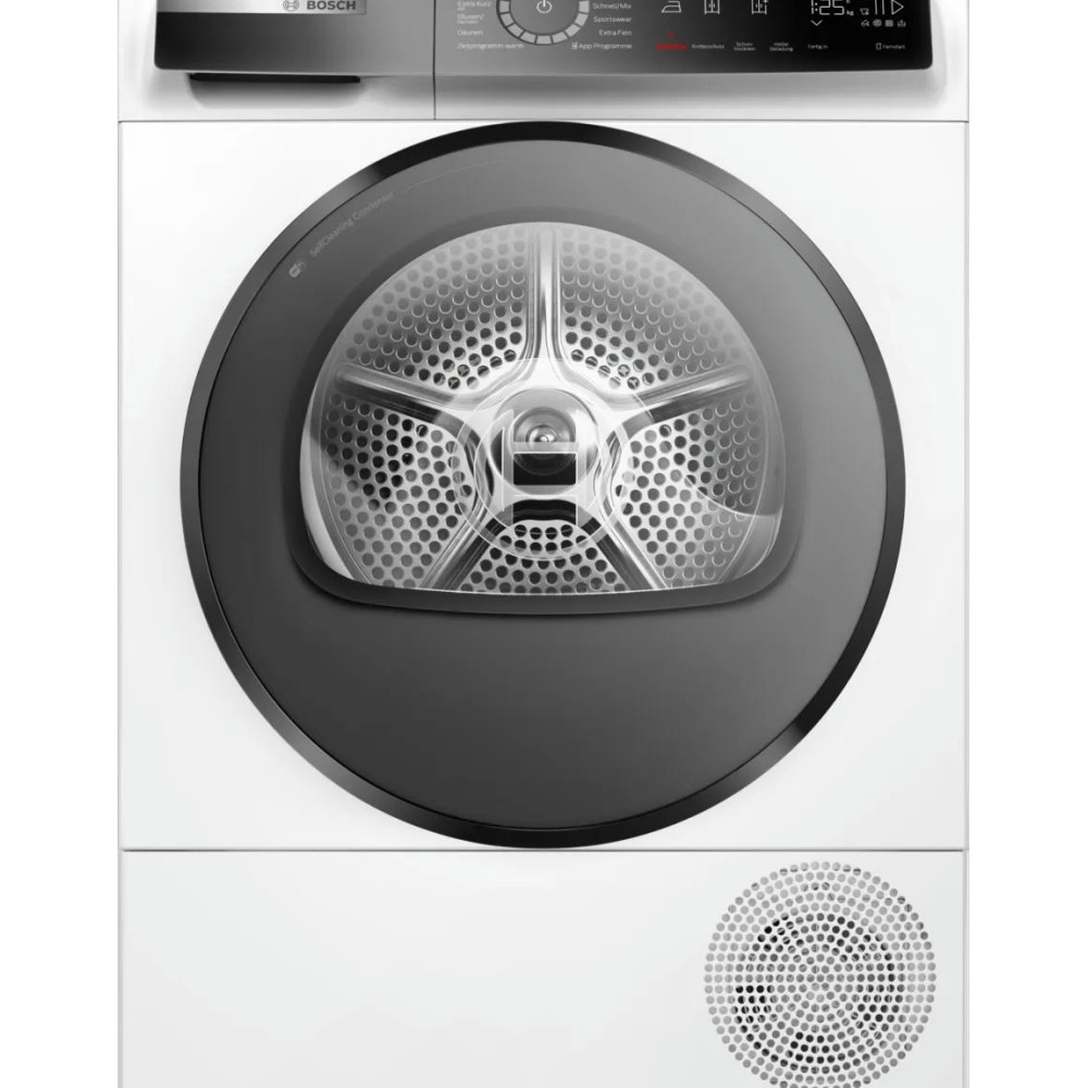 Машина оснащена LED дисплеем, который отображает все необходимые данные о процессе сушки. Специальные индикаторы информируют о заполнении ворсового фильтра и контейнера для конденсата, что позволяет своевременно проводить необходимую чистку и обслуживание. Сушильная машина Bosch WQB245B40 обладает вместительным барабаном из нержавеющей стали объемом 112 литров, что позволяет сушить до 9 кг белья за один цикл. Система AutoDry автоматически определяет оптимальное время сушки, в зависимости от типа и веса белья, что обеспечивает идеальный результат и экономит энергию. Особенностью данной модели является наличие 14 программ сушки, включая специальные программы для сушки хлопка, синтетики, рубашек, пуховиков, спортивной одежды, тонкого белья, смешанного белья, полотенец и деликатного белья. Также есть возможность отложенного старта до 24 часов.