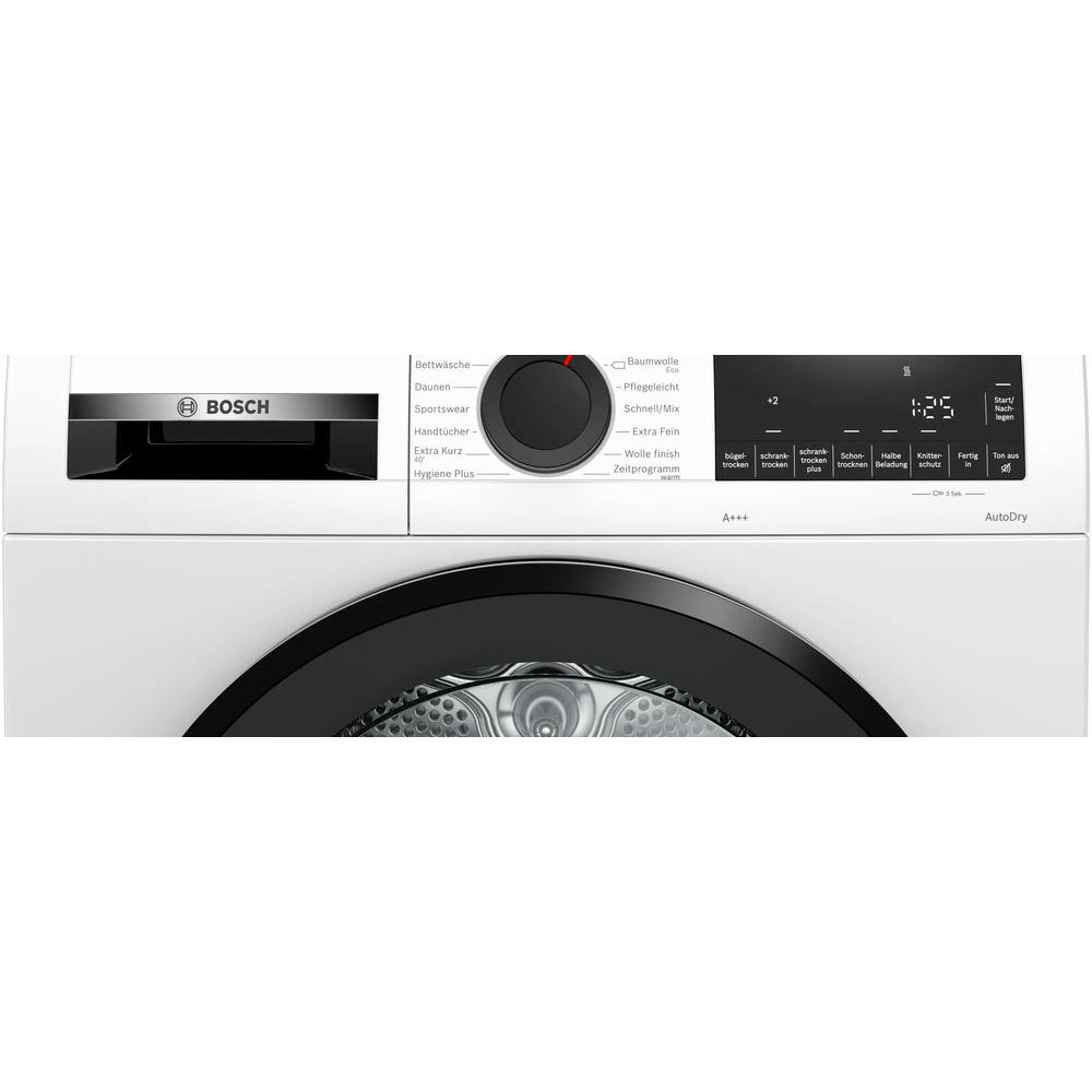 Сушильная машина Bosch WQG233D40 оснащена системой Auto Dry, которая отслеживает с помощью датчиком температуру и влажность белья, чтобы вещи не перегревались. Быстрая программа высушит легкие вещи из синтетики за 40 минут. Внутренне освещение барабана состоящее из светодиодных ламп помогает контролировать процесс.