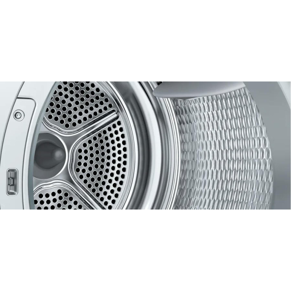 Техника предлагает 14 программ сушки, включая специальные программы для хлопка, синтетики, рубашек, пуховиков, одеял, спортивной одежды, тонкого белья, смешанного белья, полотенец и шерсти. Также доступна функция AutoDry для автоматического определения времени сушки и супербыстрая программа сушки за 40 минут. Машина оснащена функцией обработки паром Iron Assist, которая облегчает глажку, и возможностью регулировки температуры сушки. Барабан из нержавеющей стали обеспечивает долговечность и надежность устройства.