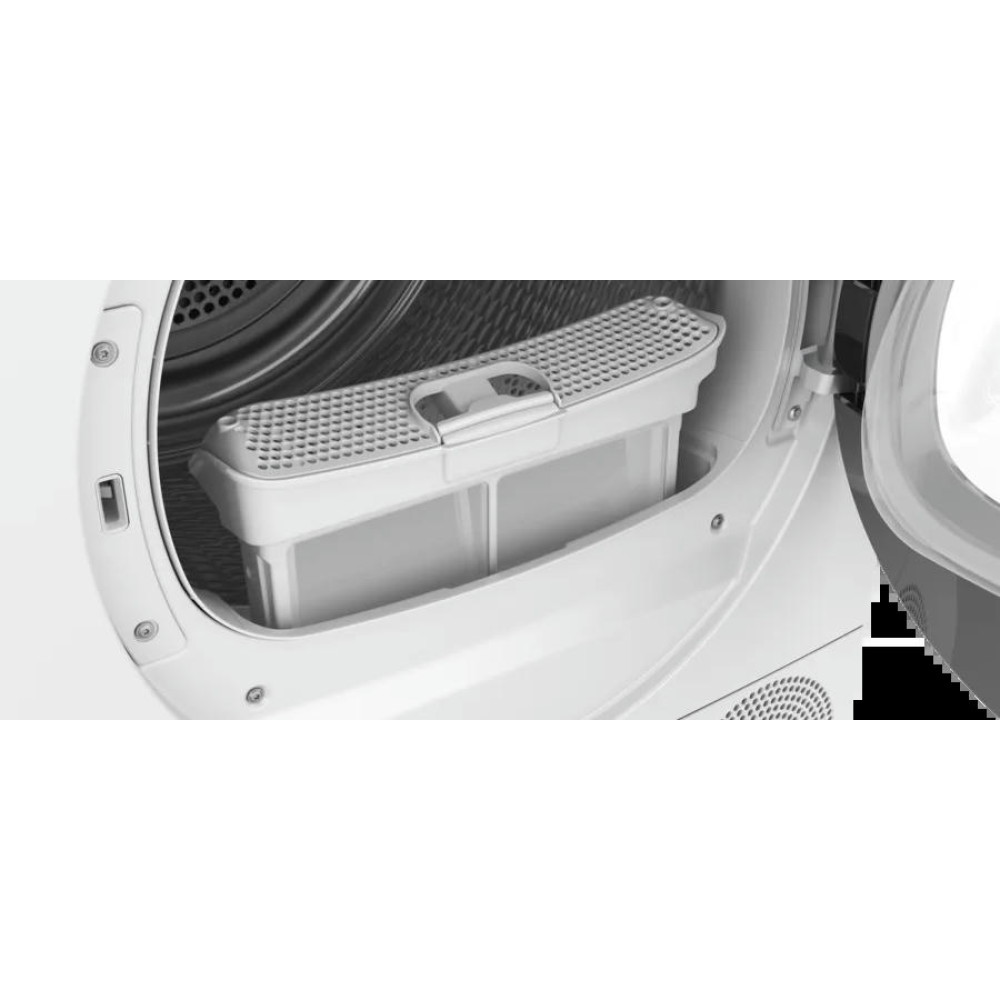 Модель оснащена тепловым насосом и работает по принципу конденсационной сушки, что обеспечивает высокую эффективность и бережное отношение к белью. Максимальная загрузка составляет 9 кг, что позволяет сушить большое количество белья за один цикл.
