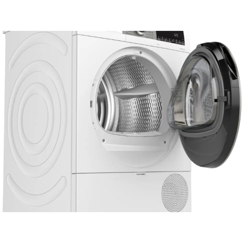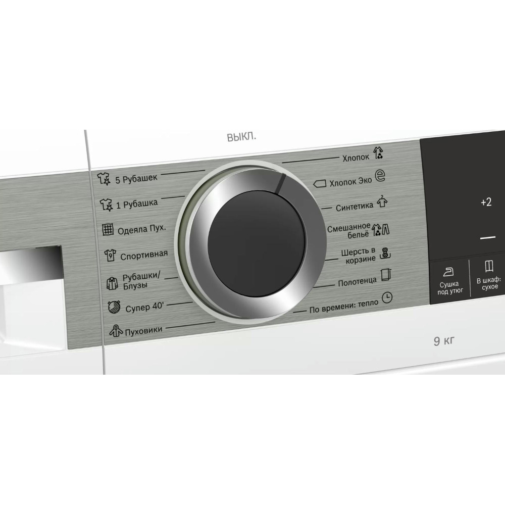 Сушильная машина Bosch WQG242A0OE вмещает до 9 кг мокрого белья. Люк открывается вправо, поэтому пользователю будет достаточно удобно её установить в ряд со стиральным аппаратом. Для сушки в аппарате предусмотрено 15 программ.