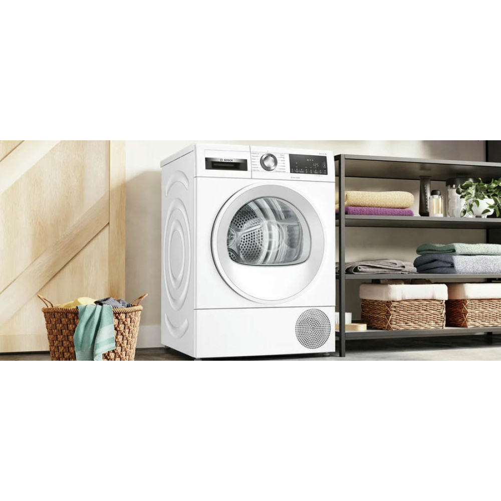 Сушильная машина Bosch WQG245AMSN является отличным выбором для тех, кто ценит комфорт и качество. Модель серии Serie 6 отличается надежностью и долговечностью. Это отдельностоящая машина с конденсационным типом сушки и применением теплового насоса, что обеспечивает эффективность и экономичность работы. Белый цвет корпуса и электронное управление с поворотным переключателем делают ее стильным и современным элементом интерьера. На LED-дисплее отображается информация о текущем режиме работы, а также индикация заполнения ворсового фильтра и контейнера для конденсата. Сигнал окончания хода программы и функция отложенного старта до 24 часов обеспечивают удобство использования.