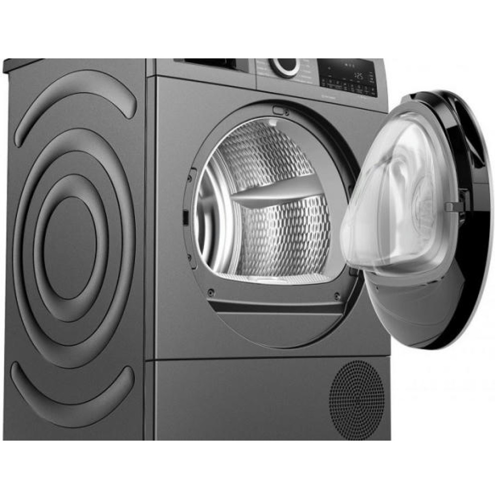 Сушильная машина Bosch WQG245ARSN — это уникальное сочетание современного дизайна и передовых технологий. Эта модель отвечает всем требованиям современного потребителя, обеспечивая непревзойденное качество сушки белья. Элегантный серый цвет корпуса подчеркивает стиль и эстетику устройства, делая его прекрасным дополнением к любому интерьеру. Машина выполняет свои функции без лишнего шума благодаря дизайну боковой панели AntiVibration, который также обеспечивает стабильность при работе. Машина оборудована большим многофункциональным LED-дисплеем, который позволяет легко управлять всеми функциями устройства. Управление осуществляется при помощи поворотного переключателя и сенсорных кнопок Touch control, что обеспечивает удобство и простоту в использовании. Отложенный старт до 24 часов позволяет запланировать время сушки, а функция AutoDry автоматически определяет время и режим сушки, в зависимости от типа и влажности белья. Модель оснащена системой сушки с применением теплового насоса, что позволяет сократить время сушки и снизить энергопотребление. Вместимость барабана составляет 9 кг, что делает ее идеальной для больших семей. Барабан изготовлен из нержавеющей стали и оснащен подсветкой LED, что обеспечивает равномерное распределение тепла и предотвращает перегрев белья.