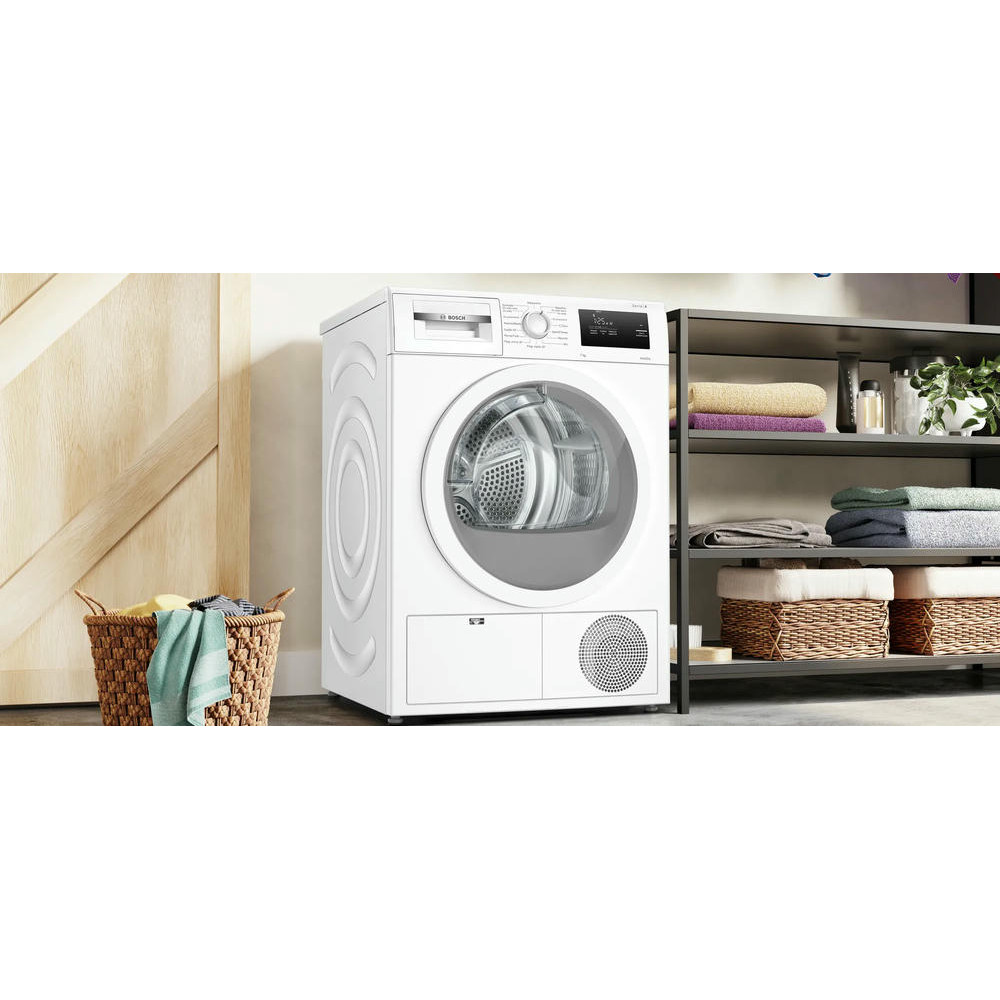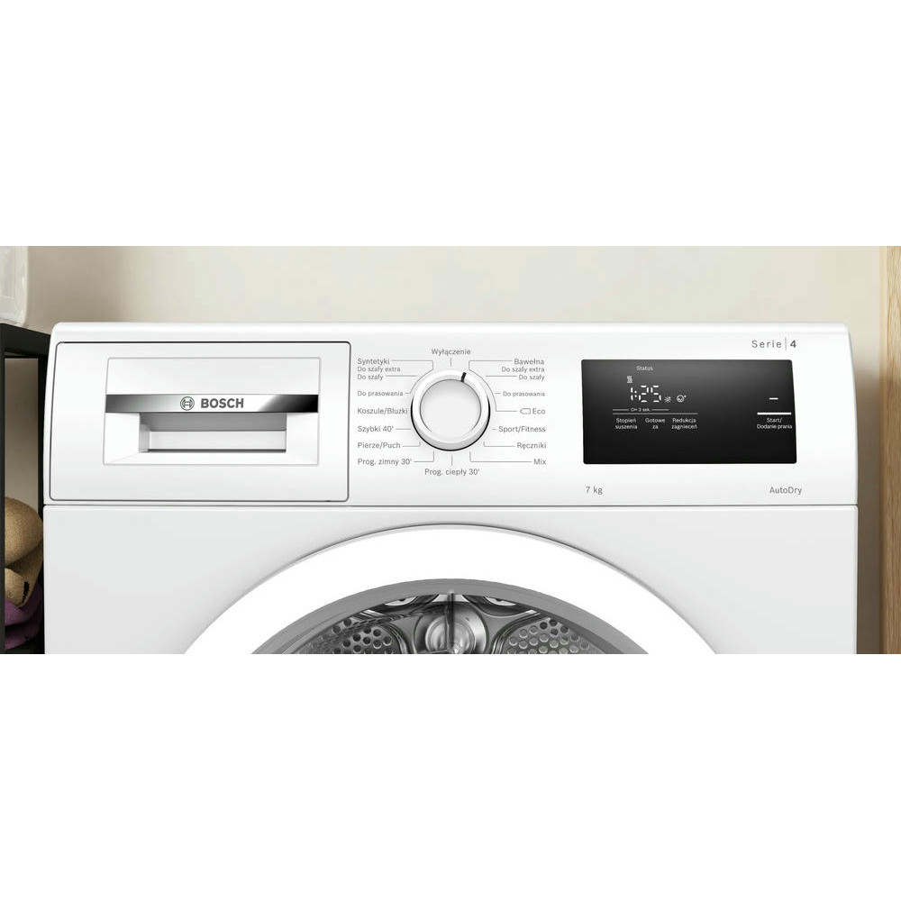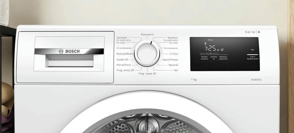 Сушильная машина Bosch WTH85077PL оснащена функцией AutoDry она автоматически измеряет влажной белья и температуру. Благодаря барабану SensitiveDrying на вещах не остаются складки. Имеется программа, которая за 40 минут просушит 1 кг одежды состоящей из синтетики или из тонких тканей.