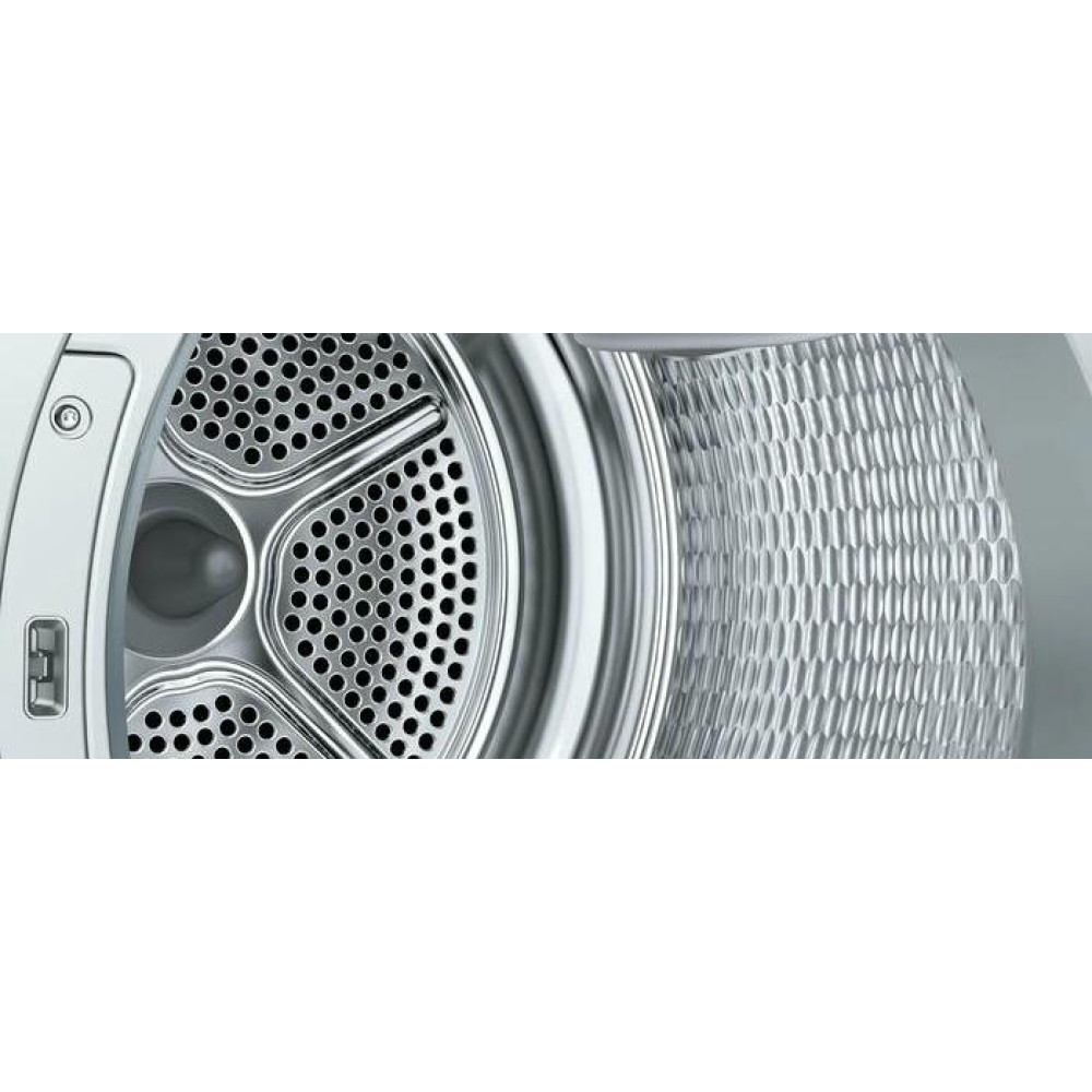 Сушильная машина Bosch WTH85V0EPL поможет профессионально и качественно ухаживать за вещами. Её наибольшая загрузка достигает 8 кг. Прибор учитывает исключительность типа ткани. Например, для шерсти есть отдельный режим, а также в комплект входит специальная корзина. Поэтому одежда останется мягкой и не сядет. Супербыстрая функция справится с задачей за 40 минут. Но для этого максимальная загрузка не должна превышать 1 кг.