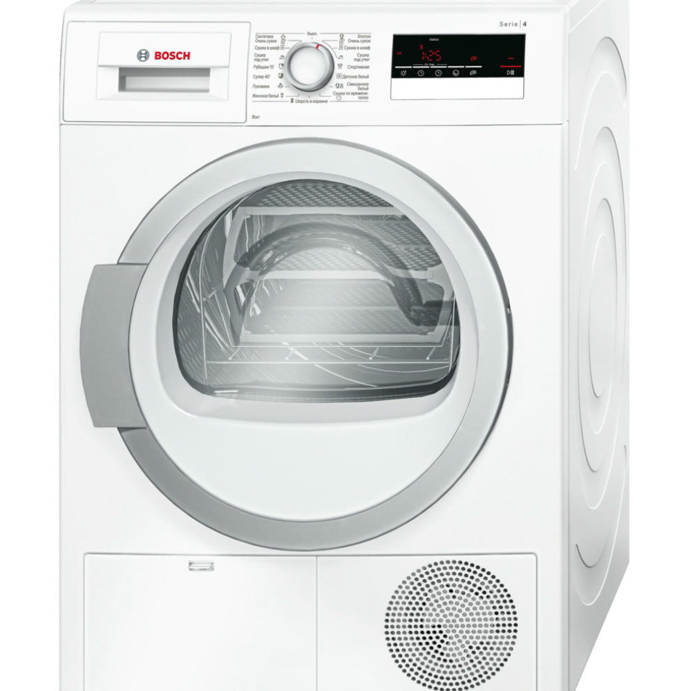 На большом LED-дисплее отображается информация о программах, оставшемся времени до конца цикла и заполнении ворсового фильтра и контейнера для конденсата.