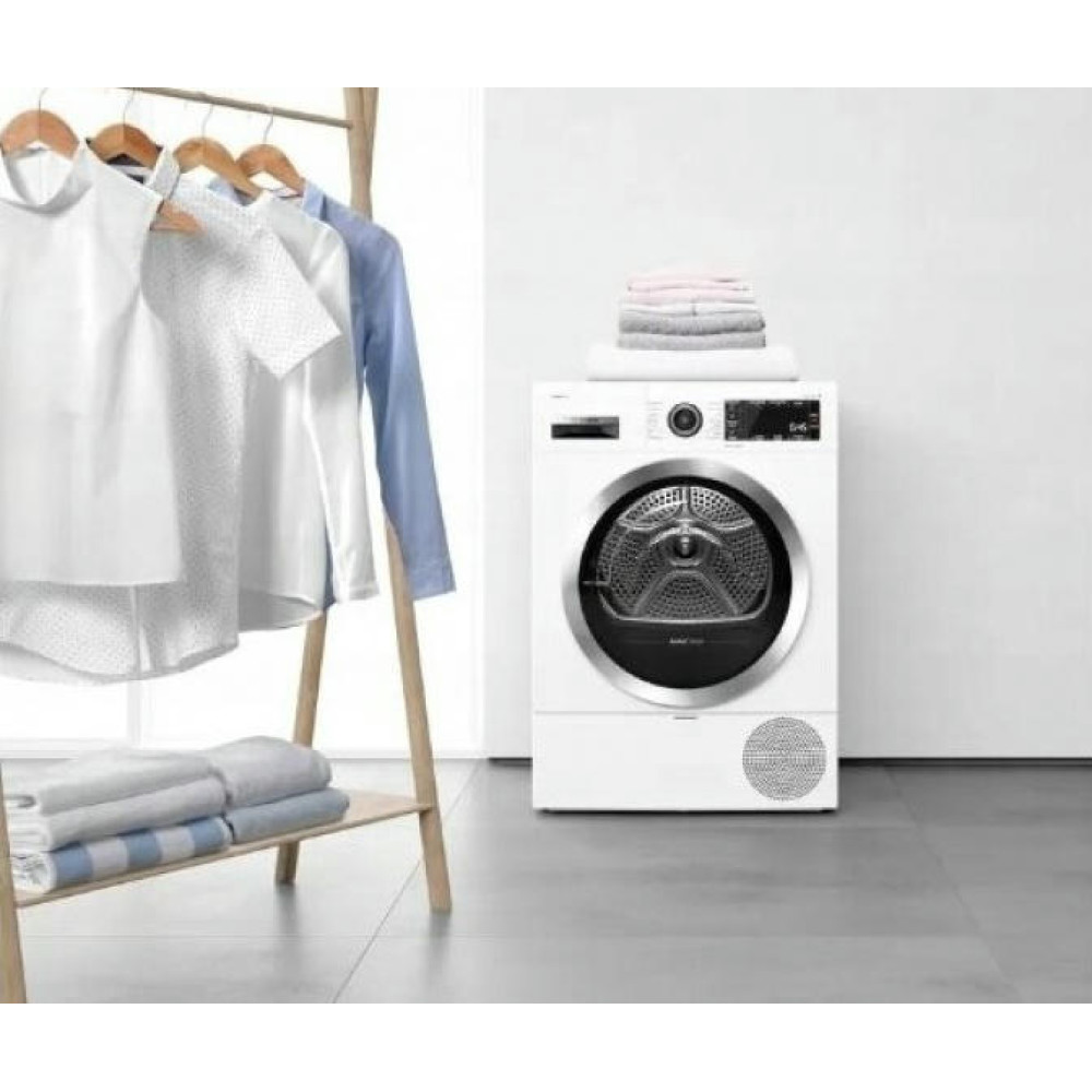 Сушильная машина Bosch WTM8528FPL поможет профессионально и качественно ухаживать за одеждой. Её наибольшая загрузка достигает 8 кг, поэтому пользователь может положить в барабан не только элементы одежды, но и одеяла, а также пуховики. Ворсовый фильтр не даст проникнуть внутрь мелким частицам, поэтому качество работы останется высоким.