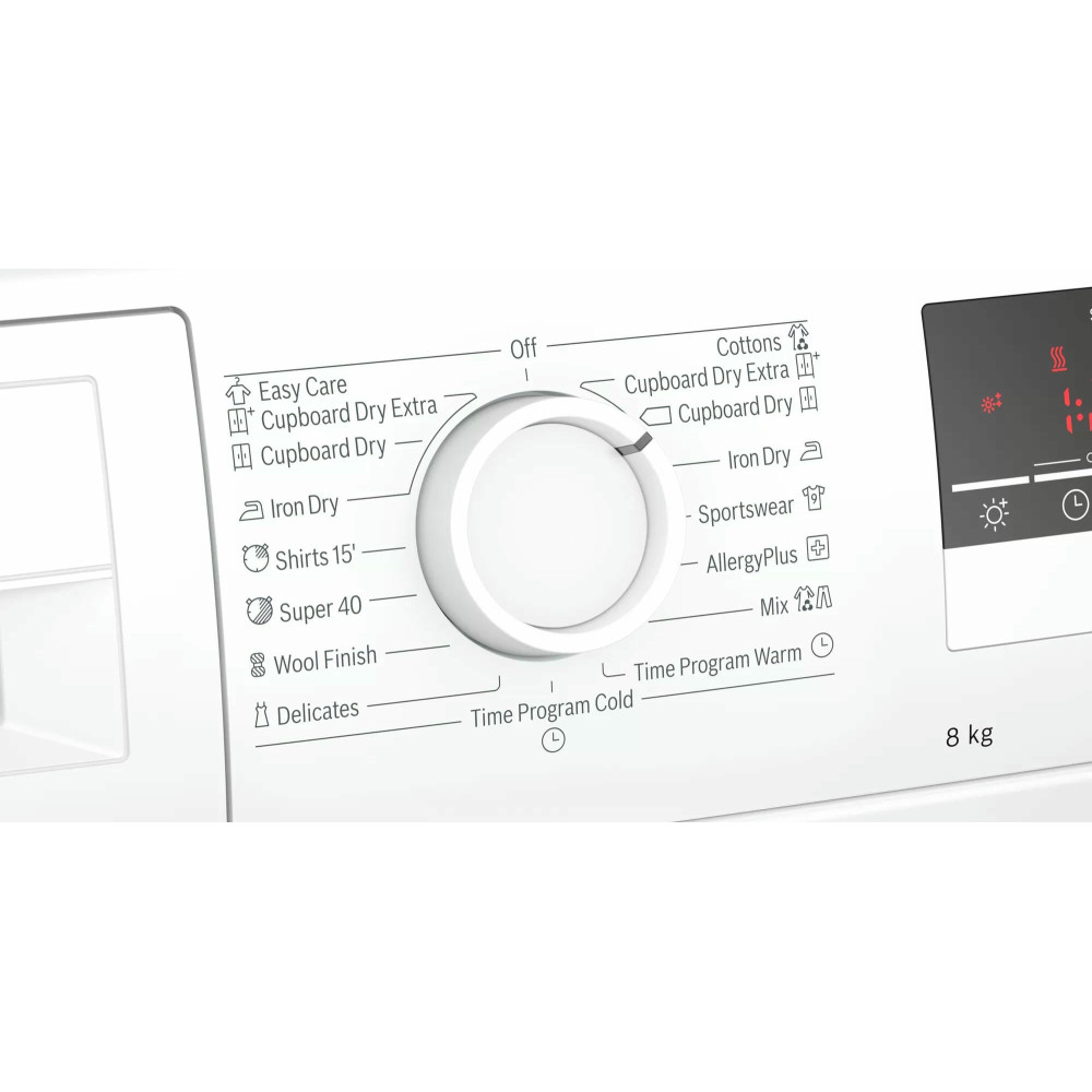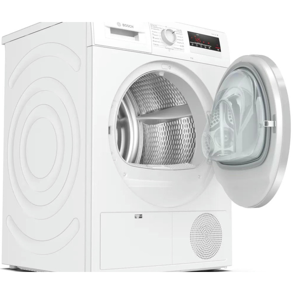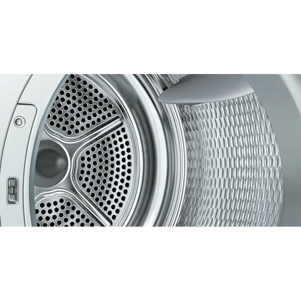 Сушильная машина Bosch WTN85423ME выполнена в классическом белом цвете с серебристым люком. Большой LED-дисплей с элементами управления Touch control и поворотным переключателем облегчит эксплуатацию прибора. Инновационные боковые стенки AntiVibration специально разработаны для обеспечения большей устойчивости и оптимального снижения вибрации. Улучшенная изоляция также регулирует уровень шума, делая данные сушилки комфортными и бесшумными даже для спокойного ночного сна. У устройства есть защита от сминания, что не даст появиться на вашей одежде нежелательным складкам.