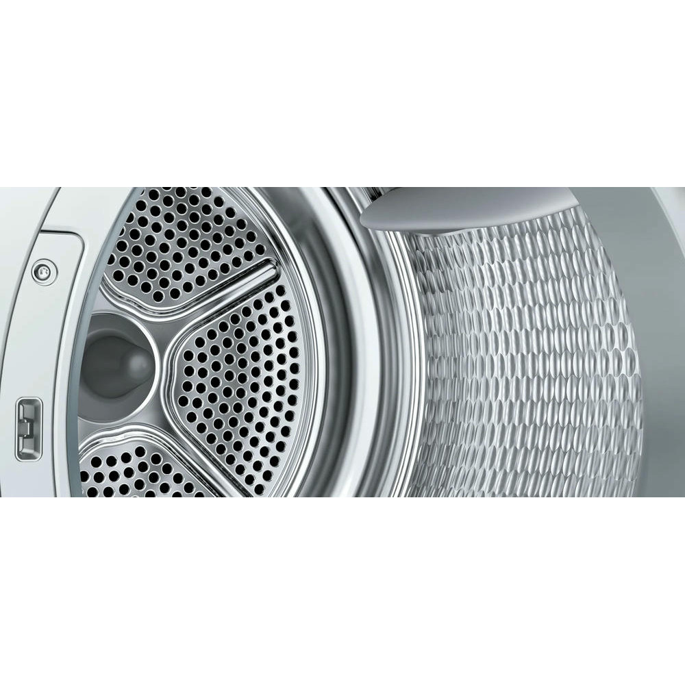 Сушильная машина Bosch WTW876S0PL оснащена системой SensitiveDrying, которая бережно обрабатывает белье, сохраняя его форму и качество. Барабан выполнен из нержавеющей стали и освещен подсветкой для удобства использования. Модель оборудована стандартным двигателем и имеет самоочищающийся конденсатор, что обеспечивает долгий срок службы устройства. Дверца машины навешена справа, а для безопасности предусмотрена защита от детей. Дизайн боковой панели AntiVibration обеспечивает стабильность машины во время работы и снижает уровень вибрации. Класс энергопотребления - А+++, что говорит о высокой энергоэффективности модели.