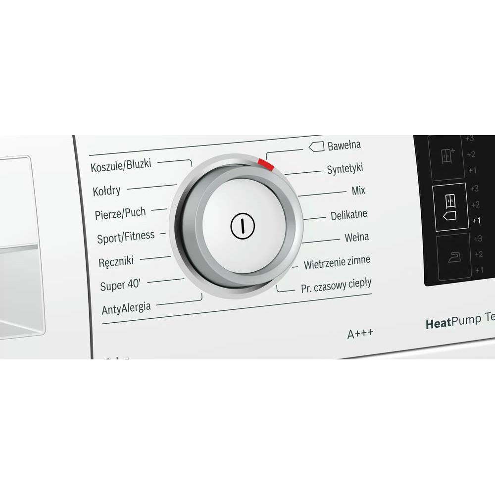Сушильная машина Bosch WTW876S0PL отличается высоким качеством, надежностью и функциональностью. Машина оснащена электронным управлением с помощью поворотного переключателя, что делает ее использование удобным и простым. Благодаря своим размерам, она легко устанавливается в любом помещении. Корпус машины выполнен в классическом белом цвете, что позволяет ей гармонично вписываться в интерьер любого стиля. Особое внимание заслуживает система сушки этой модели. Тип сушки - конденсационный, что обеспечивает эффективное и быстрое сушение белья. Максимальная загрузка составляет 9 кг, что позволяет сушить большое количество белья за один цикл. В машине предусмотрено 14 программ, включая сушку хлопка, синтетики, рубашек, пуховиков, спортивной одежды, смешанного белья, полотенец, шерсти и деликатного белья. Особенностью модели является наличие функции AutoDry, которая автоматически контролирует процесс сушки и предотвращает пересушивание белья. Кроме того, есть возможность выбрать супербыструю программу сушки, которая длится всего 40 минут.