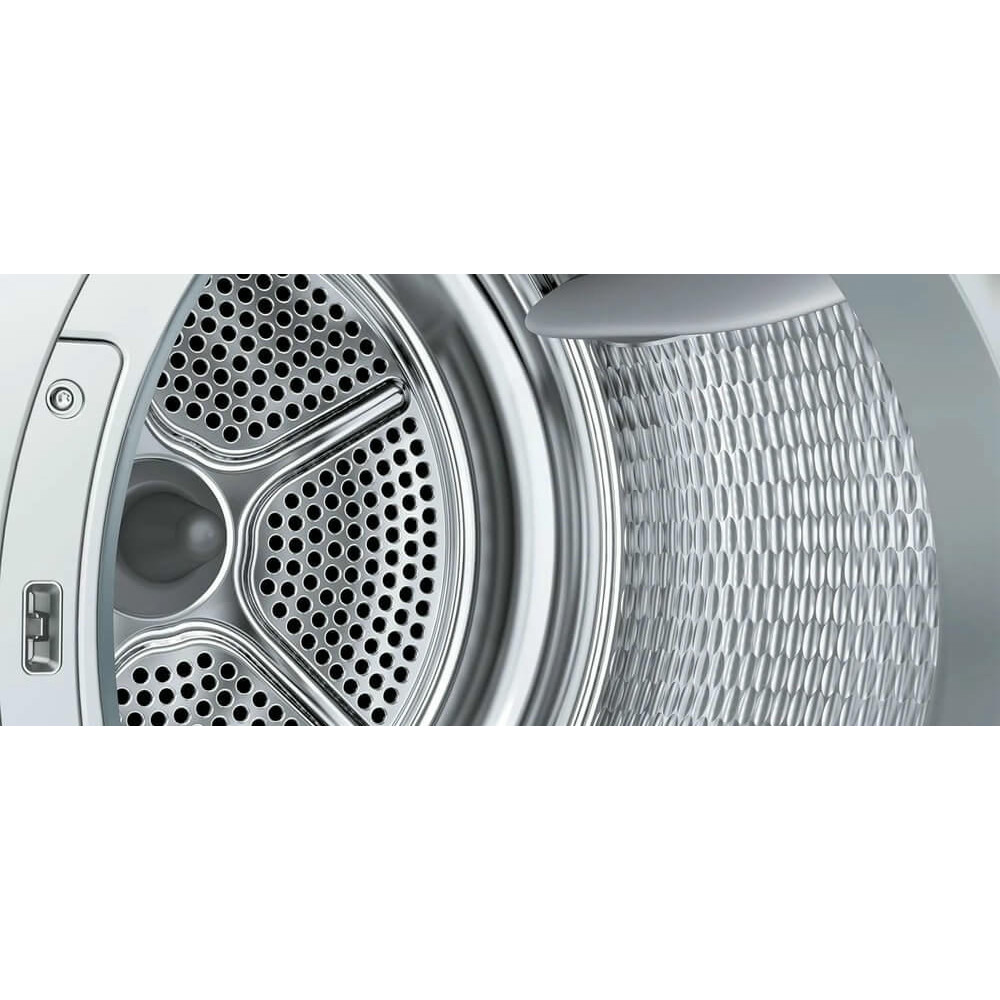 Сушильная машина Bosch WTX87K40PL занимает столько же места, сколько обычная стиральная машинка. Она выполнена в классическом белом цвете и без труда впишется в интерьер вашей квартиры. Тем не менее, в нее можно поместить до 9 кг белья. Загружайте вещи из любых тканей — у этой модели столько программ, что она справится с любым. Полотенца, спортивные вещи, синтетика, смешанные ткани, тонкое и деликатное белье — оборудование справится со всем. Машине можно доверить и сушку шерстяных изделий. Для этого тут есть специальная корзина, куда аккуратно помещаются вещи. Важно, что при обработке они не деформируются. В этой же корзине удобно сушить и обувь.