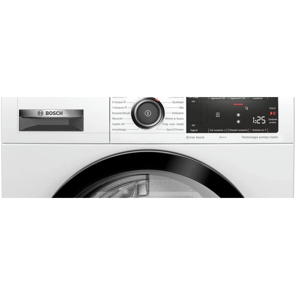Вы можете включить программу супербыстрой сушки или довериться другим режимам. Их в модели 14. В любом случае Бош WTX87K40PL предупредит вас об окончании работы. Функция AutoDry определит, что белье высохло. У прибора самый высокий класс энергоемкости, что позволяет экономить на потреблении электричества, а значит, беречь ресурсы. Можно воспользоваться функцией отложенного старта, и машина начнет сушить в те часы, когда плата за энергию меньше. Следить за состоянием техники можно с любого смартфона. Управлять сушилкой не сложнее, чем стиральной машиной — с помощью поворотных переключателей и сенсорных кнопок.