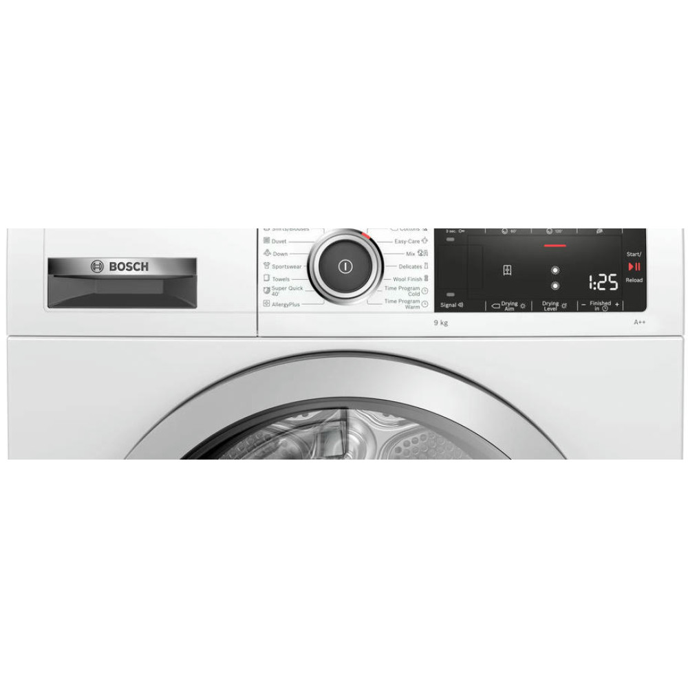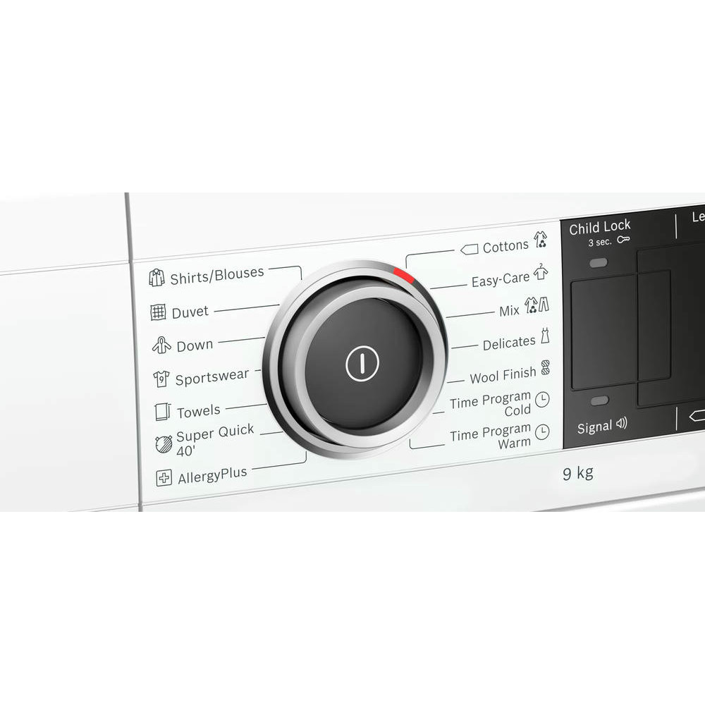 Сушильная машина Bosch WTX87M90BY имеет технологию SensitiveDrying белье сушится теплым воздухом и перемешивается по изгибам барабана и в результате ваши вещи получаются без складок. Программа супер 40 позволяет за короткое время высушить вещи из синтетики и тонких тканей. Управление осуществляется с помощью поворотного регулятора.