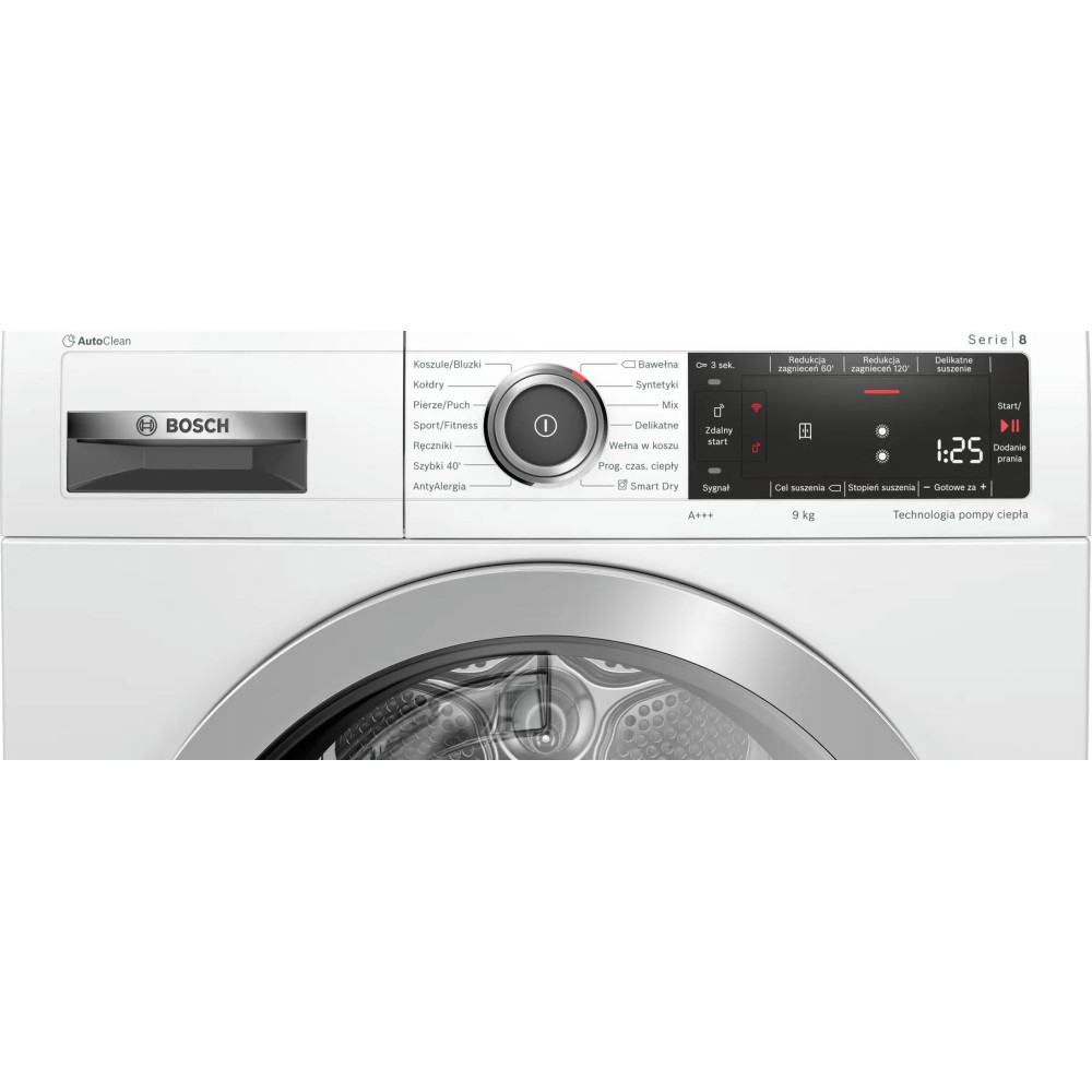 Технология AutoDry позволяет при помощи целой системы сенсоров определить уровень влажности белья в каждый момент времени, не допуская тем самым его пересушивания. Функция HomeConnect позволяет удалённо контролировать состояние прибора с Вашего смартфона. Модель оснащена ворсовым фильтром, который удерживает мелкие частицы и волокна, отрывающиеся от белья во время сушки. В этой модели такое устройство самоочищающееся — это сэкономит потребляемое электричество.
